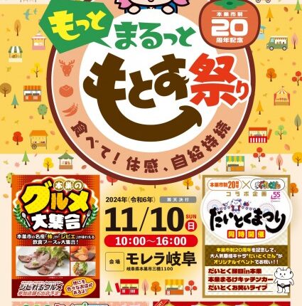 2024年11月10日(日)にモレラ岐阜にて開催される『もっと まるっと もとす祭り』に浪速製菓の物販ブースを出店します。~本巣市HPより~『もっと まるっと もとす祭り』開催!本巣