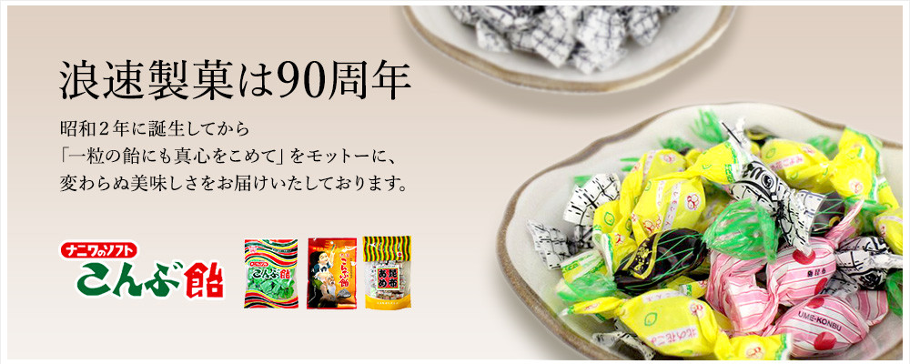 昭和2年に誕生してから私たち浪速製菓は、『一粒の飴にも真心をこめて』をモットーに、変わらぬ美味しさをお届けしております。